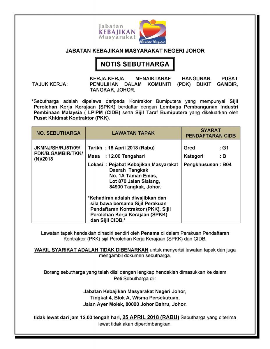 KERJA-KERJA MENAIKTARAF BANGUNAN PERTUBUHAN KEBAJIKAN PEMULIHAN DALAM KOMUNITI (PDK) BUKIT GAMBIR, TANGKAK