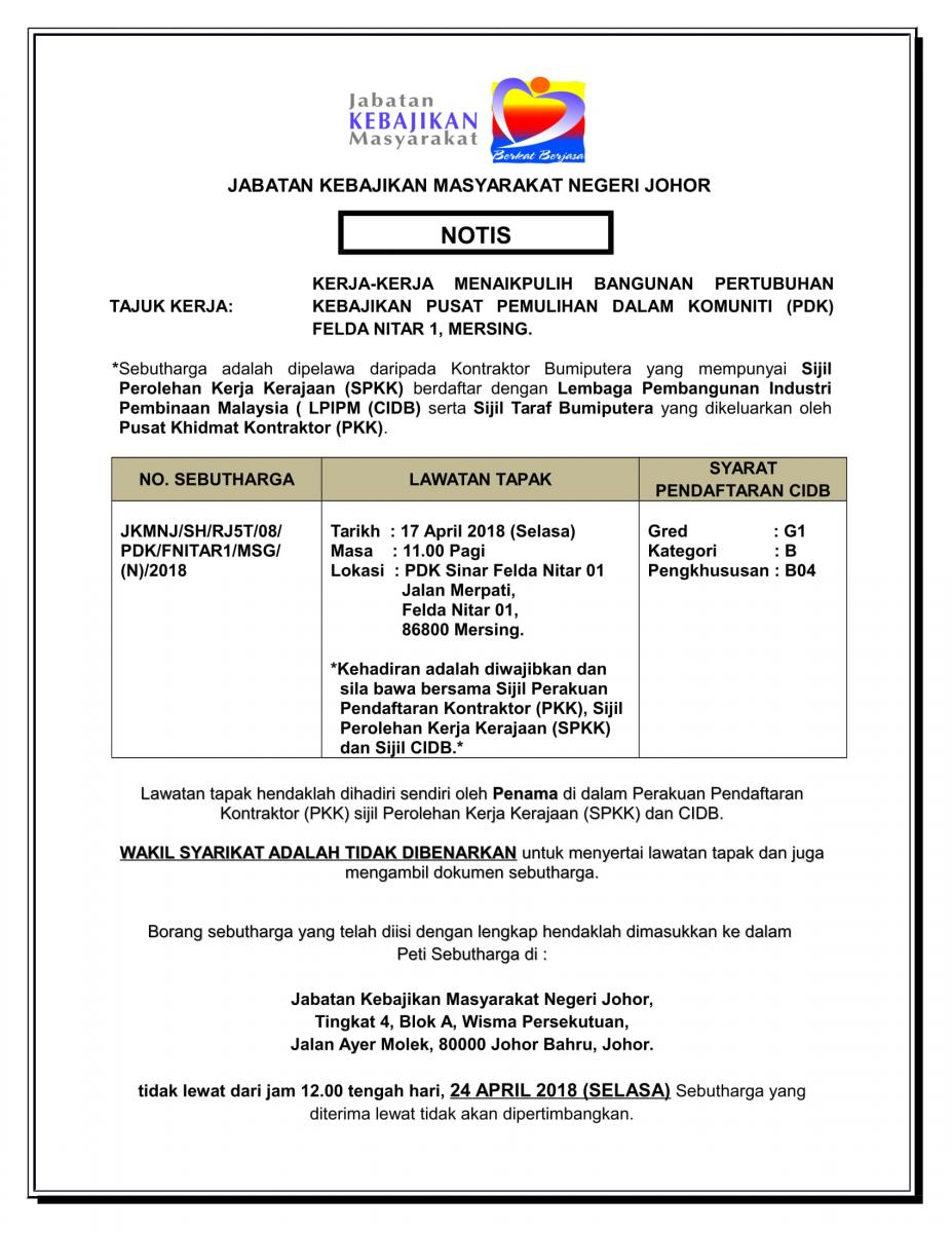 KERJA-KERJA MENAIKTARAF BANGUNAN PERTUBUHAN KEBAJIKAN PEMULIHAN DALAM KOMUNITI (PDK) FELDA NITAR 1, MERSING