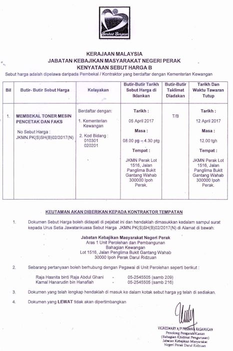 MEMBEKAL TONER MESIN PENCETAK DAN FAKS JKMN PERAK