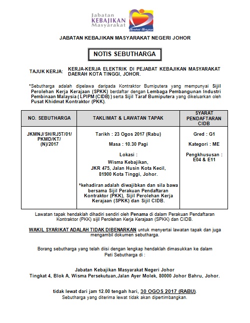 KERJA-KERJA ELEKTRIK DI PEJABAT KEBAJIKAN MASYARAKAT DAERAH KOTA TINGGI, JOHOR