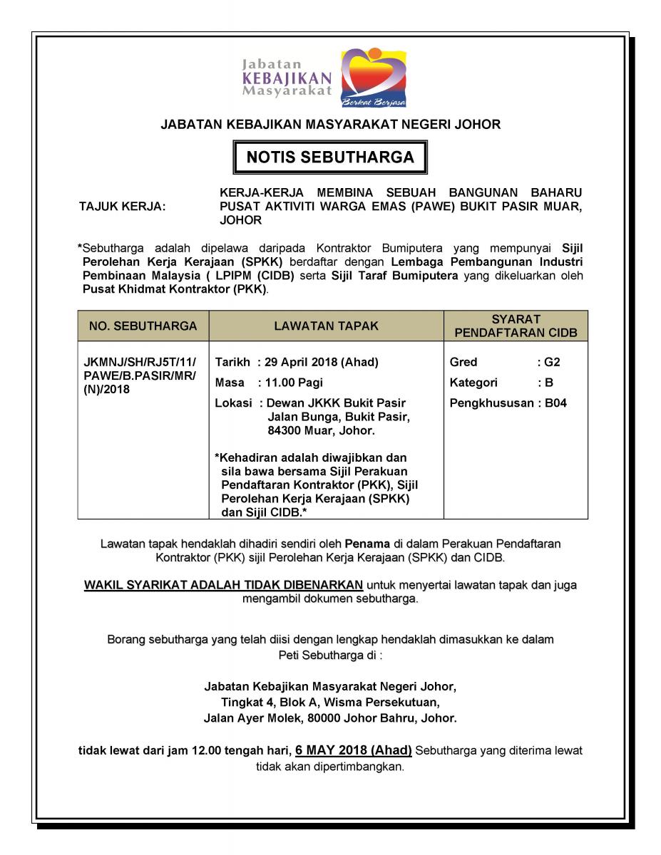 KERJA-KERJA MEMBINA SEBUAH BANGUNAN BAHARU PUSAT AKTIVITI WARGA EMAS (PAWE) BUKIT PASIR MUAR, JOHOR
