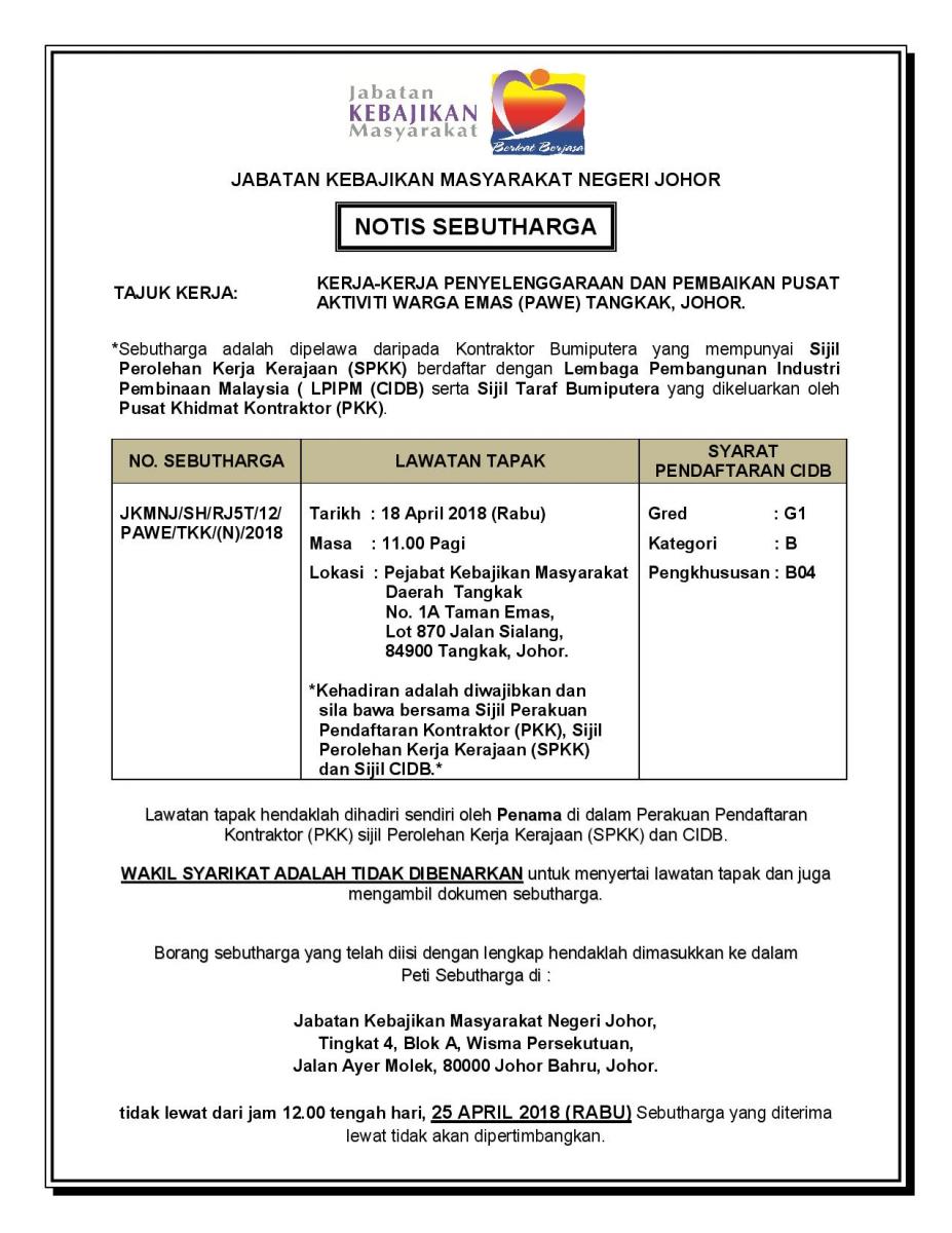KERJA-KERJA PENYELENGGARAAN & PEMBAIKAN PUSAT AKTIVITI WARGA EMAS (PAWE) TANGKAK, JOHOR